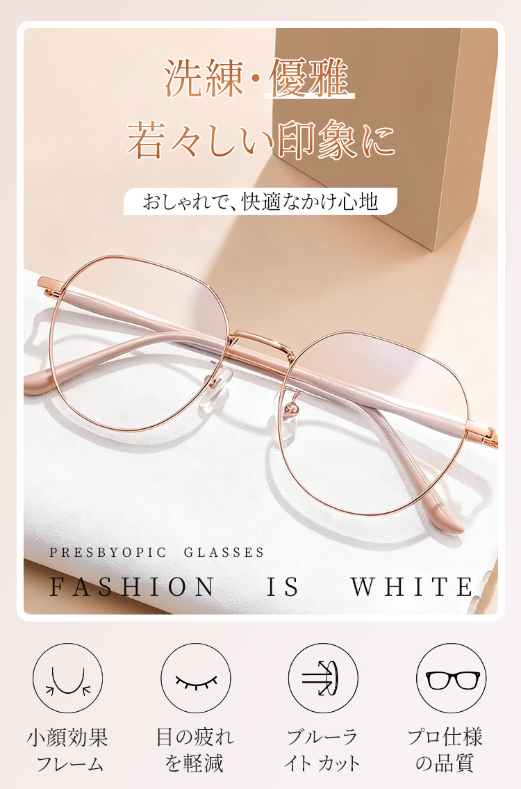 若々しく見える」レディース老眼鏡|ブルーライトカット×軽量メタルフレーム×上品な雰囲気· レディース